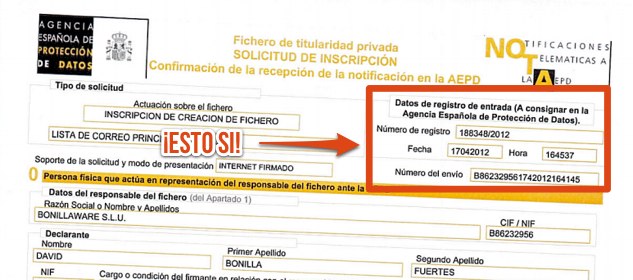 Así que, te preguntas si has hecho algo mal y, por supuesto, llamas al teléfono de información la AEPD donde te informan de que eres un pailán, un optimista y que tu fichero tardará alrededor de un mes en aparecer en su web.